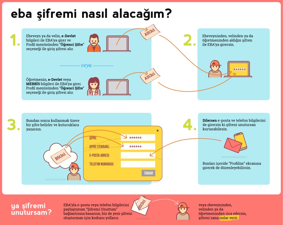 EBA'dan yeni hesap açma ve şifre yenileme ile ilgili alttaki bilgilendirme afişini inceleyebilirsiniz.